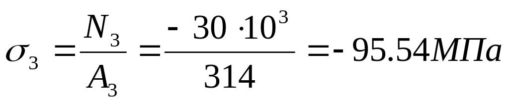 3. Вычислить на каждом участке значение нормального напряжения « » и по результатам вычислений построить эпюру нормальных напряжений.