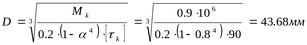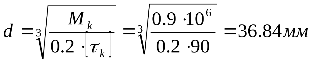 3. Определим размеры поперечного сечения бруса. Для этого используем условие прочности при кручении: