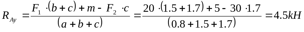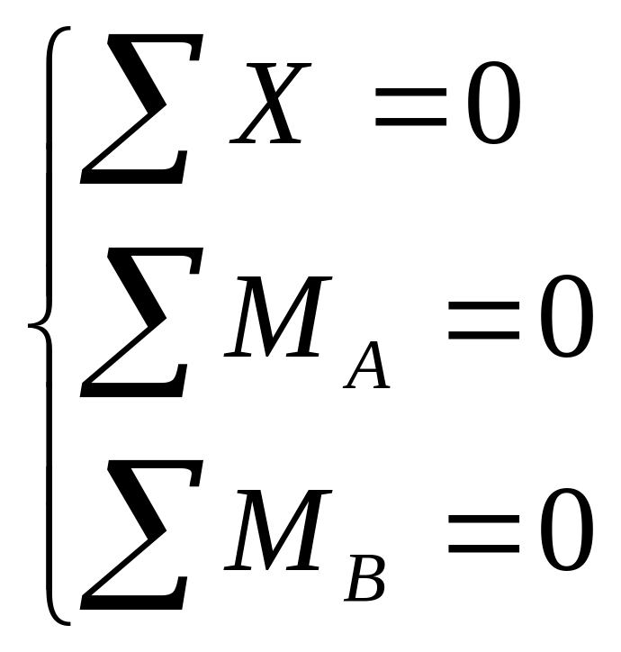 б) для определения опорных реакций в двухопорной балке используем систему уравнений равновесия: