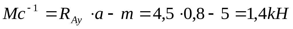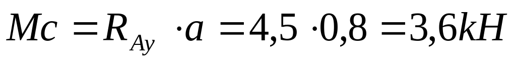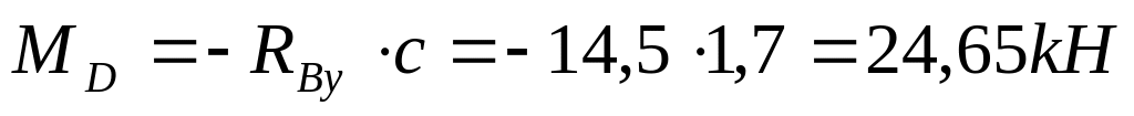 - от нагрузки, расположенной справа от характерного сечения вычислим значения изгибающих моментов в сечениях D и В: