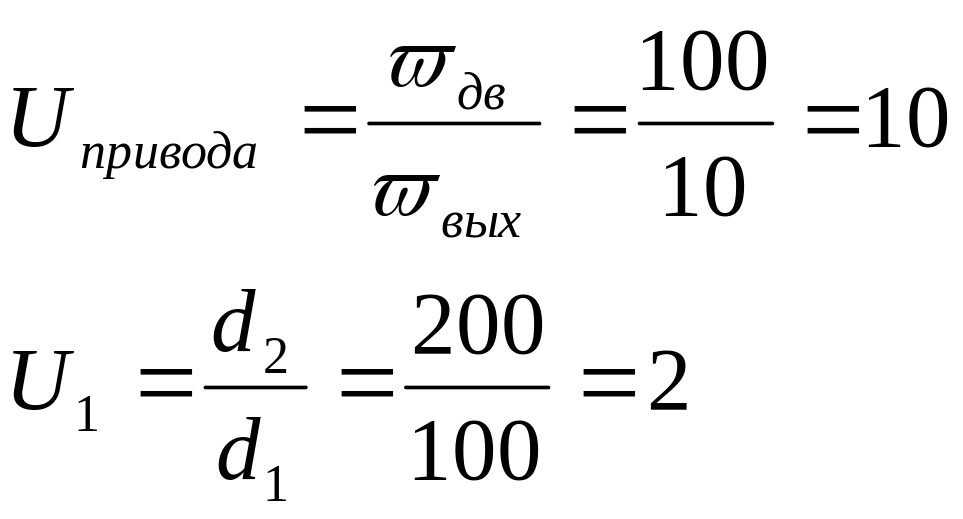 В задаче требуется выполнить кинематический и силовой расчет привода. Привод представляет из себя устройство, состоящее из нескольких передач. Каждая передача в приводе носит название ступени. Для многоступенчатого привода справедливы следующие формулы для определения U и всего привода.