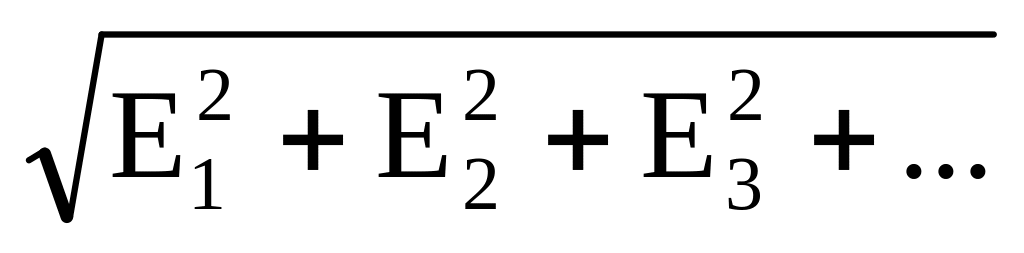 E1, Е2... — серединні помилки, що складають сумарну серединну помилку. Сумарна серединна помилка підготовки стрільби по висоті визначається через сумарну серединну помилку по дальності по формулі