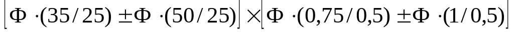 р = Ф(у/Ввп) Ф(z/Вб) К = Ф(1,4/1,0) Ф( 1,8/0,3) 0,85 =