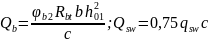 где , Qb и Qsw − поперечные силы, воспринимаемые соответственно бетоном и поперечной арматурой в наклонном сечении, которые находятся по формулам: