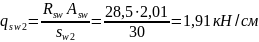 Находим погонное усилие в хомутах для принятых выше параметров поперечного армирования Asw=2,01 см2 (2Ø8 А400) , Rsw=285 МПа, sw1= 10 см: