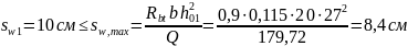 Необходимо также убедиться в том, что принятый шаг хомутов sw1= 10 не превышает максимального шага хомутов sw,max, при котором ещё обеспечивается прочность ригеля по наклонному сечению между двумя соседними хомутами, т.е.