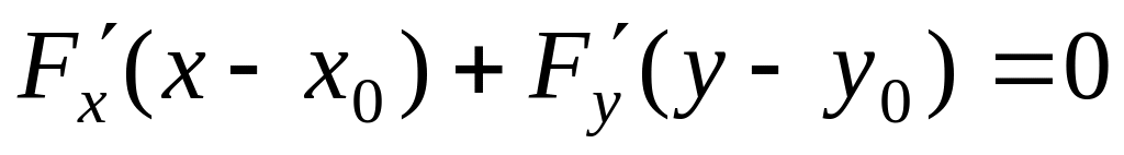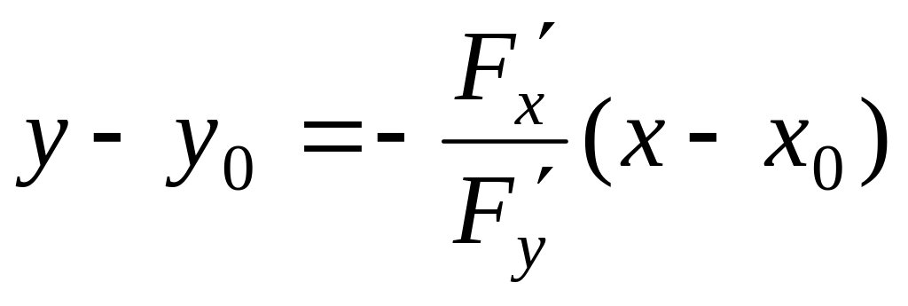 Если кривая задана неявно, то уравнение касательной в точке может быть тоже записано в виде: