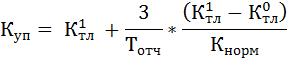 Если фактический уровень Ктл и Косс равен или выше нормативных значений на конец периода, но наметилась тенденция их снижения, рассчитывается коэффициент утраты платежеспособности Куп, при расчете которого период утраты принимается равным 3 мес.: