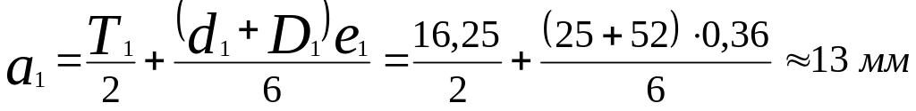 Конструктивно оформляем по найденным выше размерам шестерню и колесо. Вычерчиваем их в зацеплении. Ступицу колеса выполняем несимметричной относительно диска, чтобы уменьшить расстояние между опорами ведомого вала.
