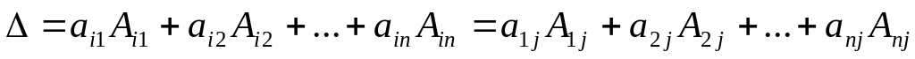 3. Теорема Лапласа. Сумма произведений элементов строки (столбца) на их алгебраические дополнения не зависит от номера строки (столбца) и равна этому определителю,