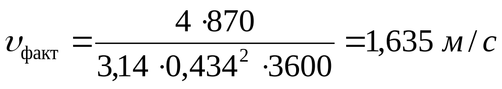 По формуле (6.3) определим фактическую скорость течения бензина в трубопроводе: