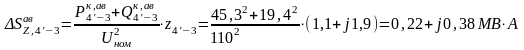 Рассмотрим обрыв одной цепи двухцепной линии 4’ ‑ 3. Определим расчетную мощность рабочей линии 4’ ‑ 3:
