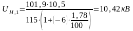 2.2.3 Определение значения напряжения в узловых точках (в точках на стороне вн)