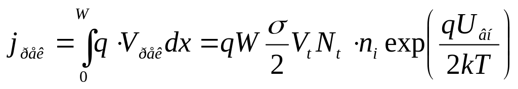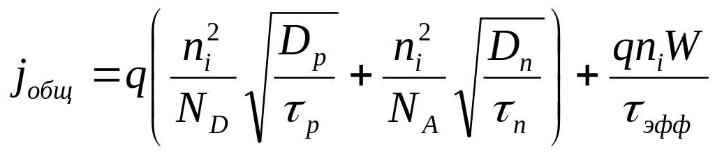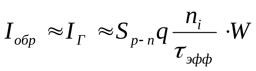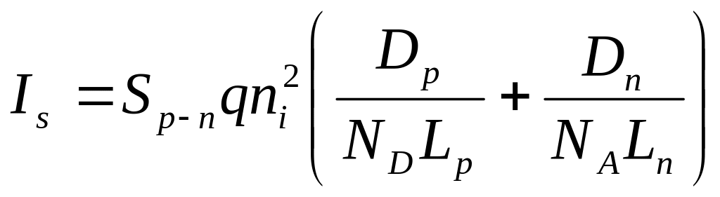 тогда становится более ясным физический смысл тока насыщения. Ток насыщения – это ток, вызванный генерацией неосновных носителей заряда со скоростью генерации рп0/р и пр0/п на расстояниях Lp и Ln от границы области объемного заряда.