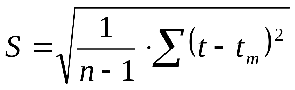 Иногда для характеристики изменчивости случайной величины используют дисперсию D=S2. Математическое ожидание tm на графике закона нормального распределения (см. рис.29) определяет положение вершины «колокола», а среднее квадратическое отклонение - ширину его основания.