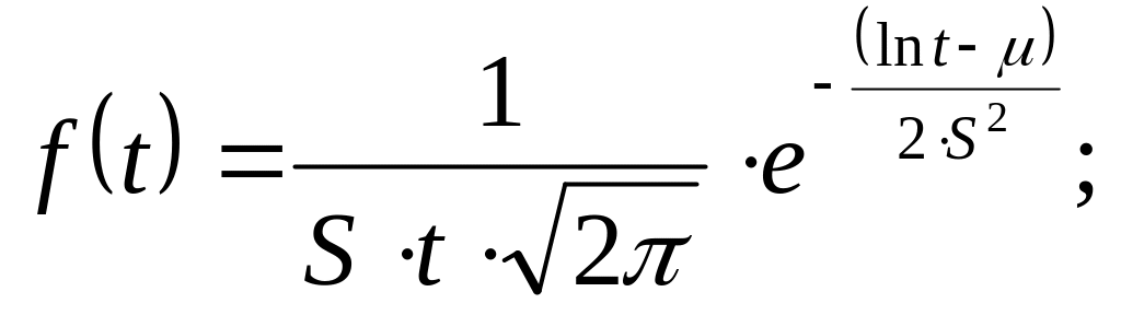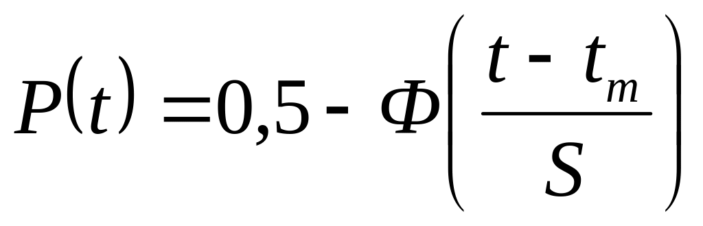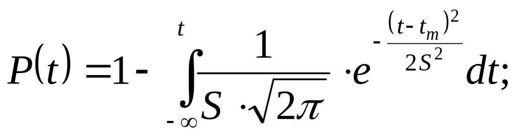 моменту времени; е - основание натуральных логарифмов; S - среднее квадратическое отклонение от математического ожидания (tm) случайной величины (t) наработки на отказ