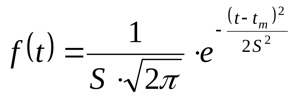 Плотность нормального распределения возникновения случайных событий-отказов описывается формулой Гаусса