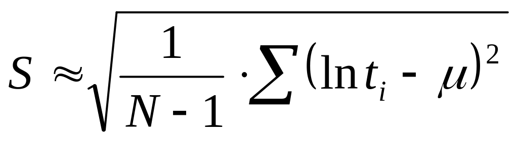 где µ и S параметры, определяемые по результатам испытаний. Так, при испытаниях N изделий до отказа