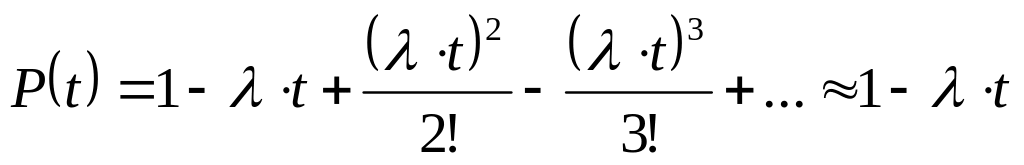 Как обычно λ(t) ≤ 0,1, поэтому формулу для вероятности безотказной работы можно упростить в результате разложения в ряд и отбрасывания малых членов: