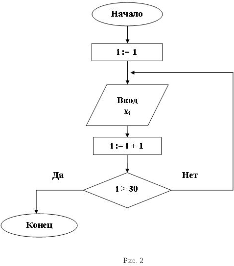 Хi – i-й элемент массива Х, где i = 1, 2, …, 30.