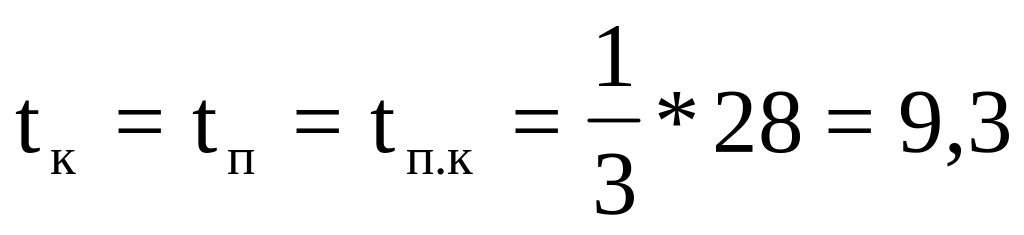 где tк, tп и tп.к –время соответственно копания, поворота платформы на разгрузку и поворота с порожним ковшом к забою, с;