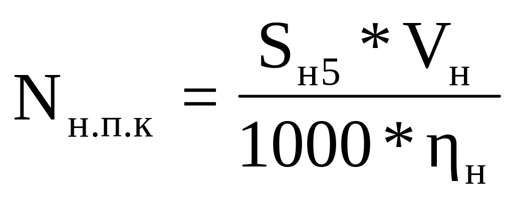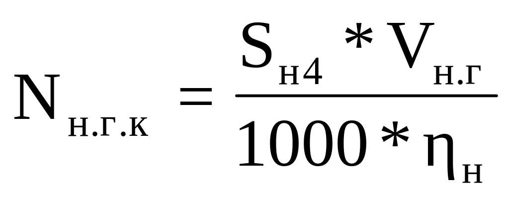где Nн.к, Nн.г.к и Nн.п.к - мощность двигателя напорного механизма соответственно при копании горной массы, при повороте груженого ковша к месту разгрузки и при повороте порожнего ковша к забою, кВт