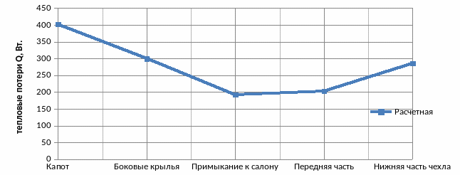 Рис.2.4. Тепловые потери капотного пространства с чехлом