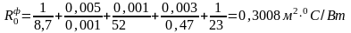 Сопротивление теплопередачи, многослойной ограждающей конструкции с однородными слоями следует определять по формуле [9]: