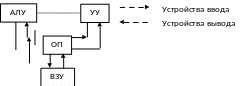 Устройство управления (УУ) – часть ЦПУ, которая вырабатывает распределенную во времени последовательность внутренних и внешних управляющих сигналов, обеспечивающих выборку и управление команд. В простейшем случае УУ имеет в своём составе три устройства: регистр команд, который содержит код команды во время её выполнения; программный счетчик, в котором содержится адрес очередной, подлежащей выполнению команды; регистр адреса, где вычисляются адреса операндов, находящихся в памяти. 27