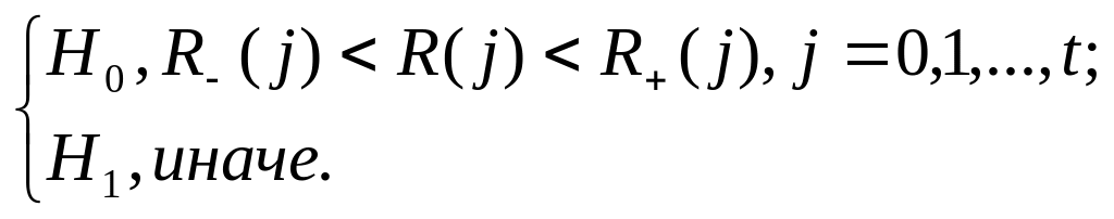 Тест «ковариация» позволяет проверить свойство (7) (гипотезу ) для последовательности и описывается следующим решающим правилом :
