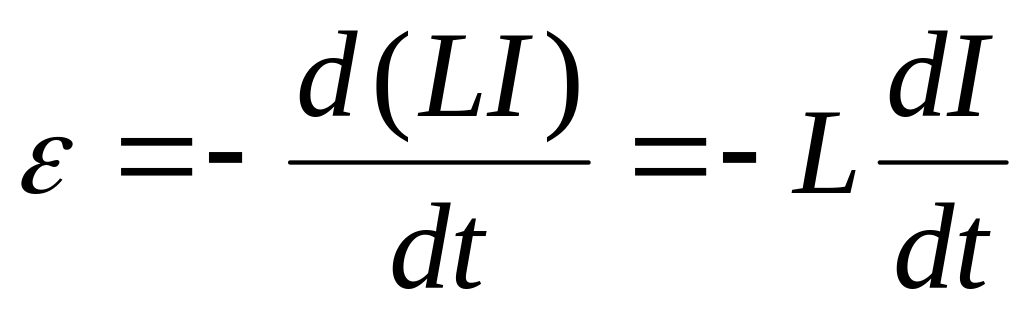 Если сила тока в контуре начнёт изменяться, то будет изменяться и магнитный поток Ф, создаваемый этим током, а значит, в контуре возникает ЭДС индукции. Возникновение ЭДС индукции в проводящем контуре при изменении силы тока в этом же контуре, называется явлением самоиндукции. Для определения величины ЭДС самоиндукции при изменении силы тока, протекающего в контуре, подставим выражение для потока магнитной