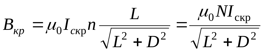 критическое значения силы тока соленоида,