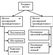 Роторные насосы являются тем классом насосов, который в настоящее время нашел широкое применение в авиационной технике. Все эти насосы, различные в конструктивном отношении, имеют между собой много общего в рабочем процессе и в характеристиках. Упрощенная классификация роторных насосов представлена на рис. 5.2.