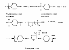 Принцип метода. При взаимодействии сульфаниловой кислоты в присутствии нитрита натрия (калия) проходит реакция диазотирования и образуется диазобензолсульфоновая кислота, которая в реакции с гистидином или тирозином образует комплексное соединение вишневого цвета (азокраситель):