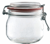 A form of industrial glass blow molding, the technique known as “press and blow” is used to make wide-mouthed containers such as jam jars, rather than the narrow-necked items such as wine bottles, that are made with the blow and blow process (see p.120). The main difference between the techniques occurs during the molding process. Instead of being blown, to create wide-mouthed vessels the “gob” of glass is pressed onto a male former inside the mold cavity. This can speed up production cycles and allows greater control in the distribution of the glass, so that a thinner wall can be achieved. After the objects have been formed, the production line pushes them into an annealing furnace where, over the period of an hour, the objects are slowly cooled to room temperature, thus eliminating any tension in the glass.