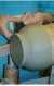 2 A ceramic pestle being finished using a flat smoothing tool.