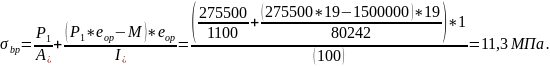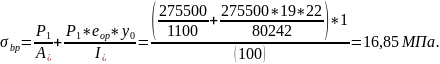Напряжение в бетоне при обжатии в соответствии с формулой (2.36) [1]: