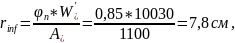 Расстояние от ядровой точки, наиболее удаленной от растянутой зоны (верхней) до центра тяжести приведенного сечения, согласно формуле (7.31) [1]: