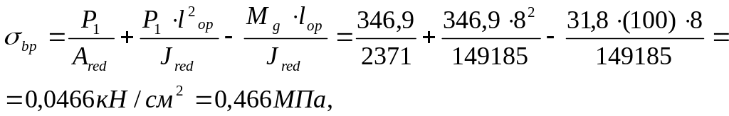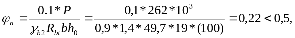 где Р=Asp(sp-100)=5,96*(540–100)*0.1 = 262 кН – усилие предварительного обжатия,