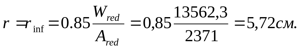 Расстояния от ядровых точек – наиболее и наименее удалённой от растянутой зоны (верхней и нижней) – до центра тяжести сечения:
