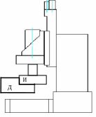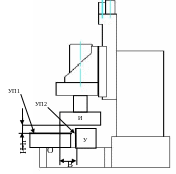 Инструмент И закрепляется в станке (Рисунок 2 .3, а). Деталь тоже надо закрепить на станке. Причем сделать это надо так, чтобы пересечение инструмента и детали имело размеры паза. Для этого на столе станка крепится опора О так, чтобы ее верхняя грань находилась на расстоянии H-h от нижнего торца инструмента (Рисунок 2 .3,б). Там же на столе устанавливается упор У на расстоянии В от внешнего края инструмента. Любая деталь, аналогичная детали Д, устанавливается поверхностью Б1 на опору О и упирается поверхностью Б2 в упор У. Инструмент И при этом вырежет в детали именно такой паз, который нужен.