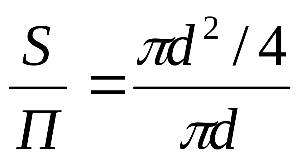 Ішкі диаметрі d болатын дөңгелек құбыдың қиамысының ауданы S = πd2 / 4 , ал сұйықпен толық толтырғанда П = π d, осыдан гидравликалық радиус: