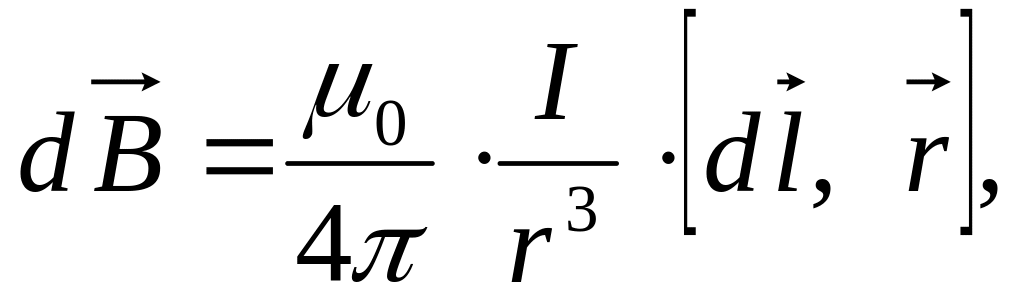 Решение; Согласно закону Био−Савара−Лапласа, вектор индукции магнитного поля, созданного элементом проводника dl, по которому течет ток I, равен