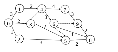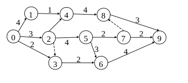 - •Розрахувати сітьовий графік за часом. Визначити у табличній формі ранній та пізній початок та закінчення роботи. Повний та частковий резерви роботи.