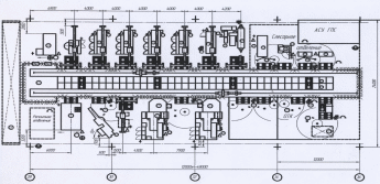 (Рис. 2.11). Оператор склада через устройство связи с АСУ ГПС передает информацию о заготовках, их количестве и команду на перемещение поддона на склад. По конвейеру роликовому тара с заготовками перемещается через устройство контроля габаритов и массы в зону действия крана-штабелера, который перемещает тару в свободную ячейку склада. АСУ ГПС запоминает положение тары в данной ячейке. Технологическое оборудование расположено