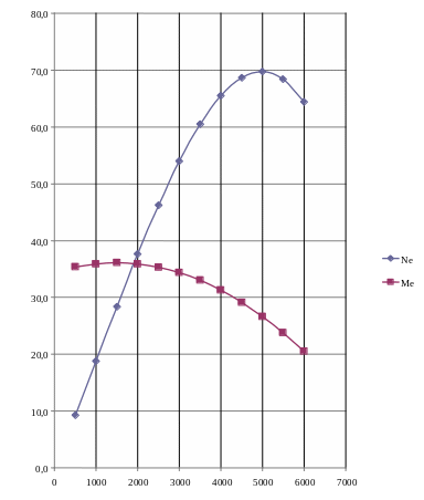 максимальный крутящий момент двигателя и соответствующая ему частота вращения коленчатого вала;