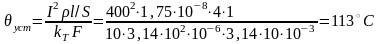 где θуст = P/(kxF) — установившееся превышение температуры. Расчет θуст и Т произведем на единице длины проводника l = 1 м, поэтому