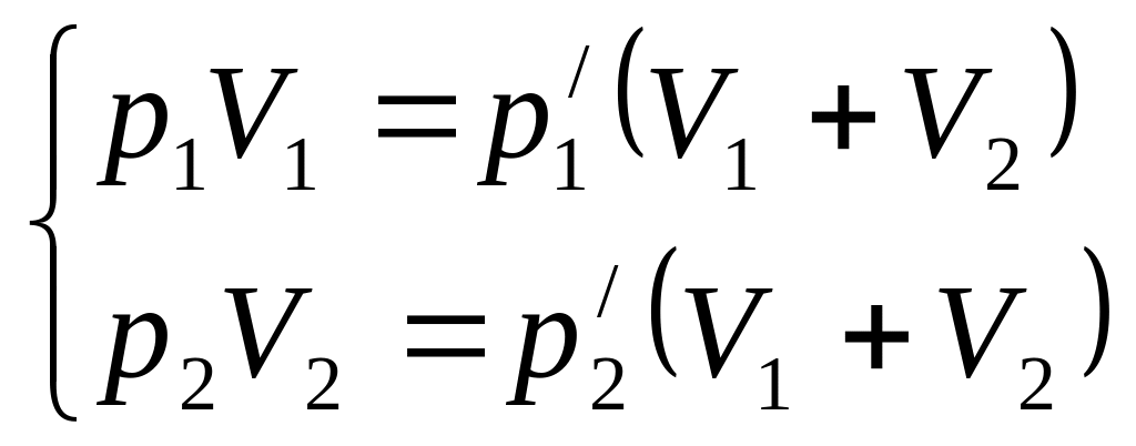 где р1' - давление газа первого сосуда, р2' - давление газа второго сосуда.