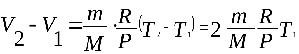 Воспользовавшись уравнением Менделеева-Клайперона, найдем разность объемов двух состояний газа (V2 – V1):