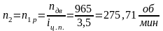Частота вращения ротора двигателя и передаточное отношение привода: